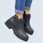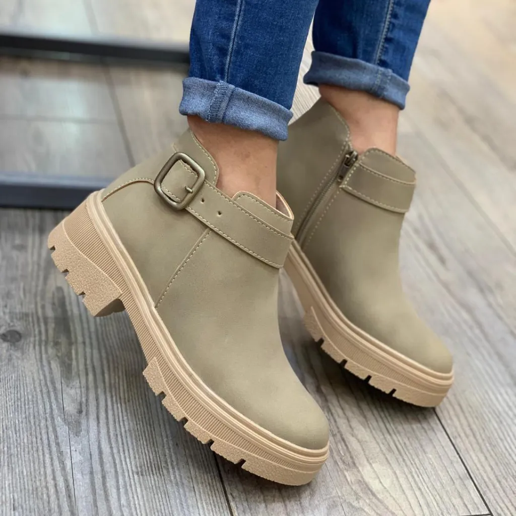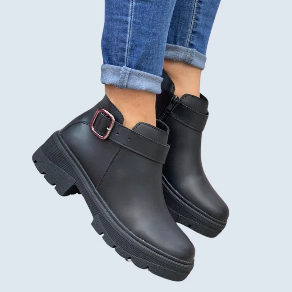 Impulsa tu estilo con el Botín Suela Tractor Correa Lateral. Su suela de gran agarre y la correa lateral distintiva le dan un aire moderno y funcional. Ideal para la mujer que busca resistencia y tendencia en un calzado versátil, con la calidad de ser un producto nacional. ¡Un botín con carácter para tus outfits! 🔗