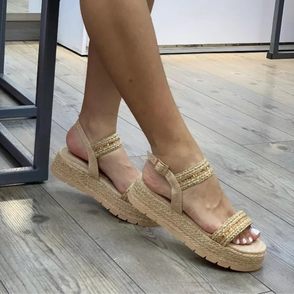 PLATAFORMA YUTE CAPELLADA TEJIDA CON STRASS