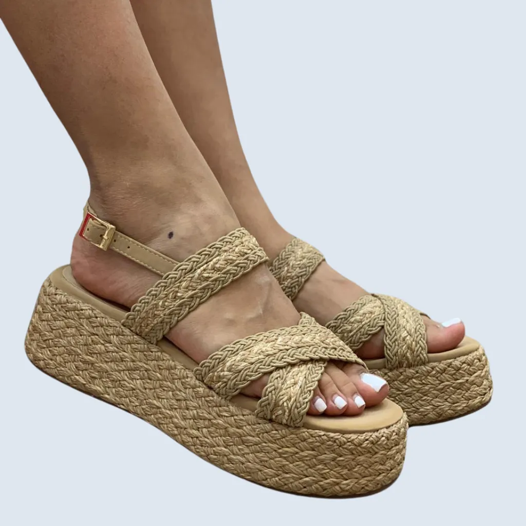 La Plataforma Yute Capellada Tejida Cruzada es la combinación perfecta de estilo y altura. Su capellada tejida en yute con diseño cruzado ofrece un look fresco y veraniego, mientras su plataforma brinda confort para todo el día. Ideal para la mujer que busca destacar con autenticidad y calidad nacional. ¡Siente la brisa en tus pies! ☀️