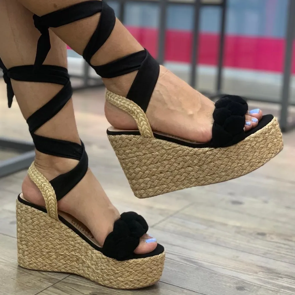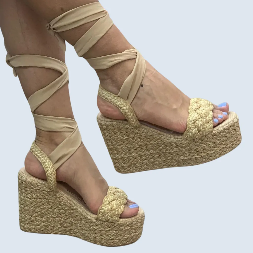 PLATAFORMA YUTE CAPELLADA TRENZA Y TIRAS DE AMARRAR