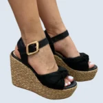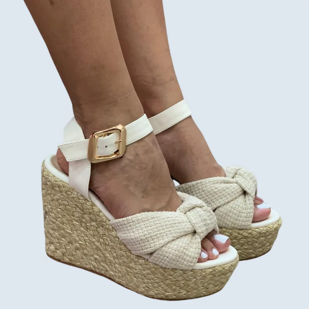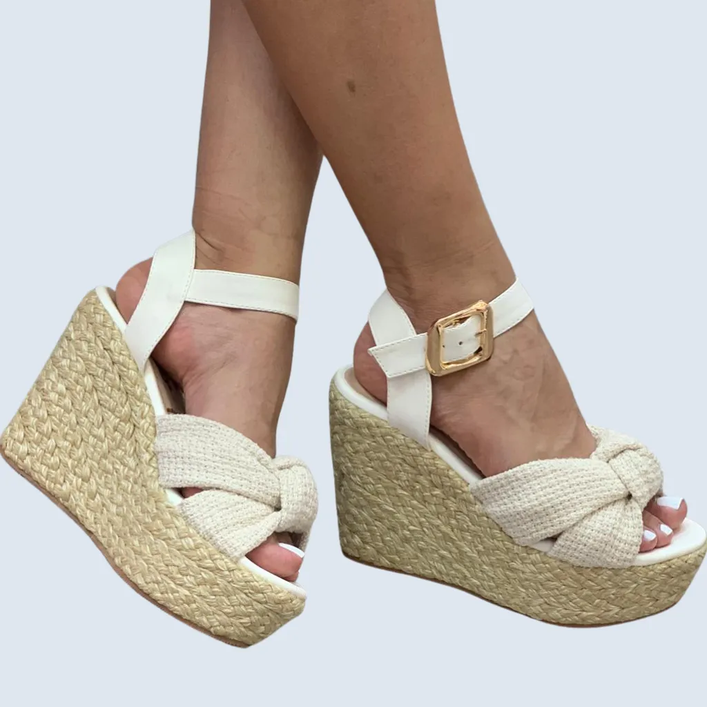 PLATAFORMA EN YUTE CAPELLADA CON NUDO Y CORREA AL TOBILLO