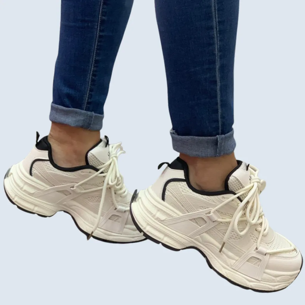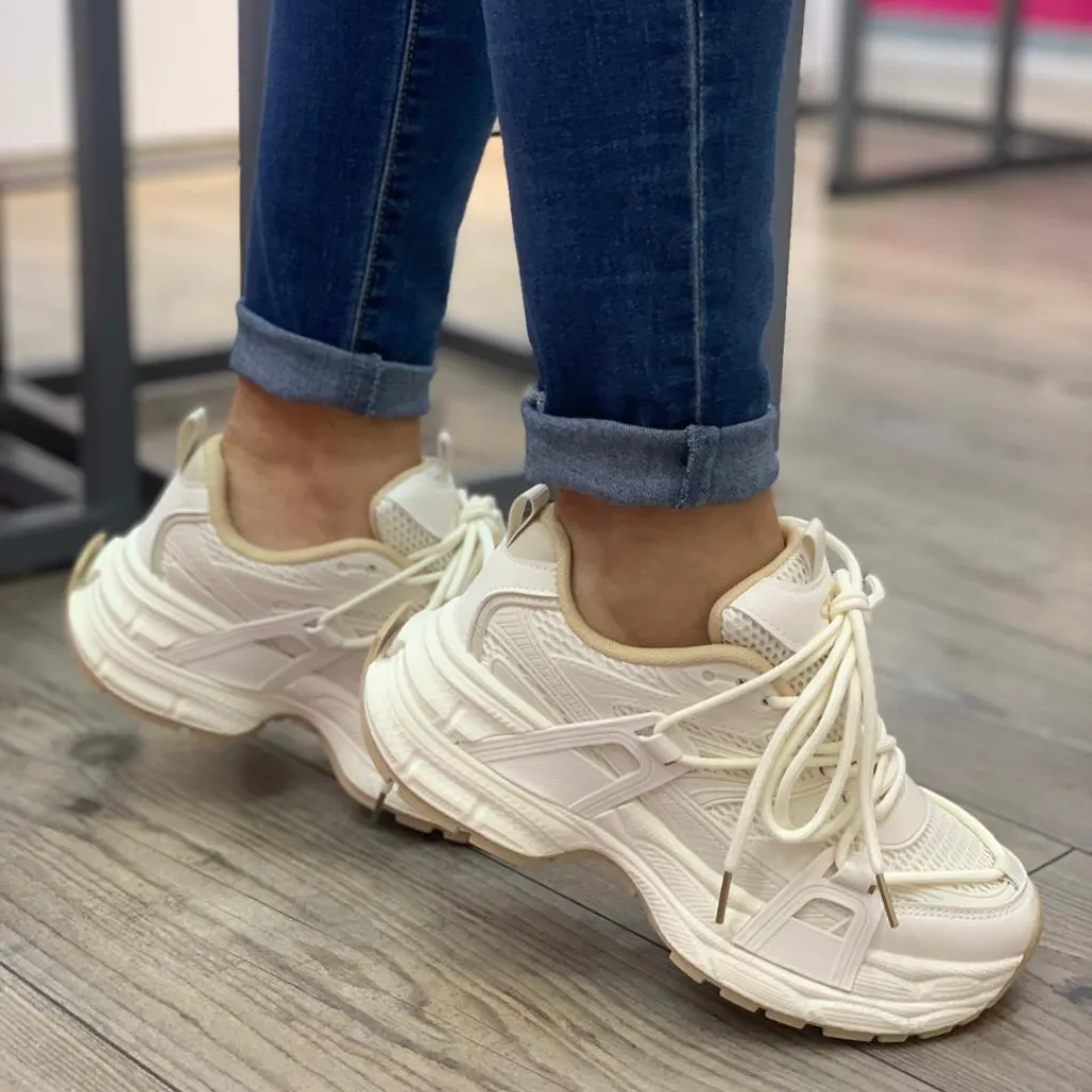 Siente la fusión de estilo y funcionalidad con los Tenis Cauchos y Cordones Cruzados. Su diseño robusto con suela de plataforma y el sistema de cordones entrelazados ofrecen un ajuste perfecto y un look casual y urbano de impacto. Son ideales para la mujer moderna que busca un calzado cómodo, versátil y que añada carácter a sus outfits diarios. ¡Camina con confianza y a la moda! 🚀